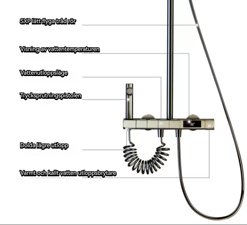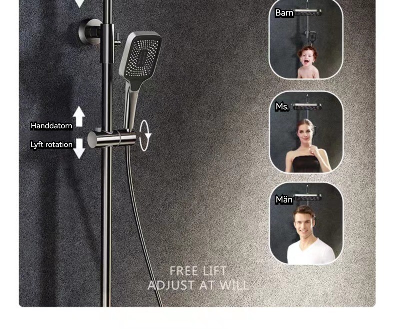Termostatduschset för hemmet med egen vattenrenare, termostatdusch, temperaturlåsning med en knapptryckning