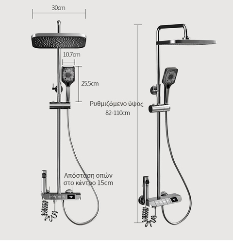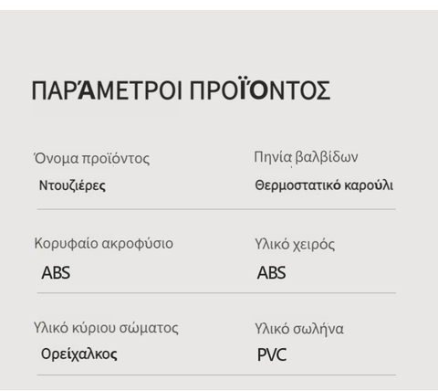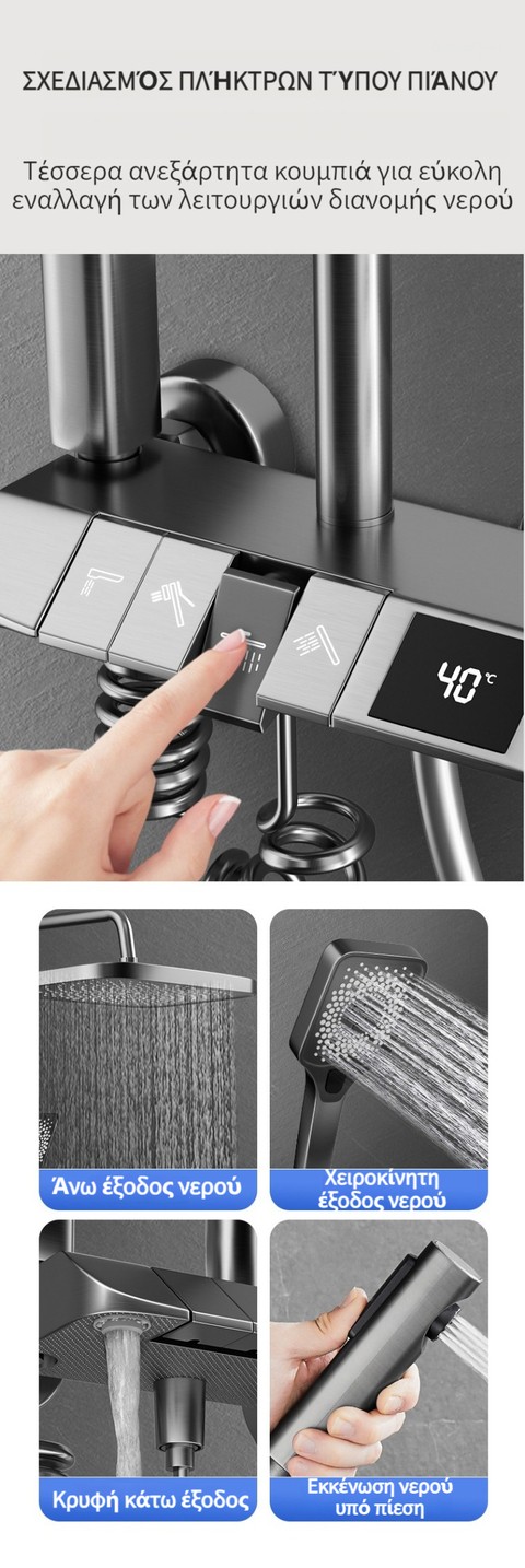 Σετ ντους, έξυπνος θερμοστάτης, πλήκτρα πιάνου, όλα ορειχάλκινα